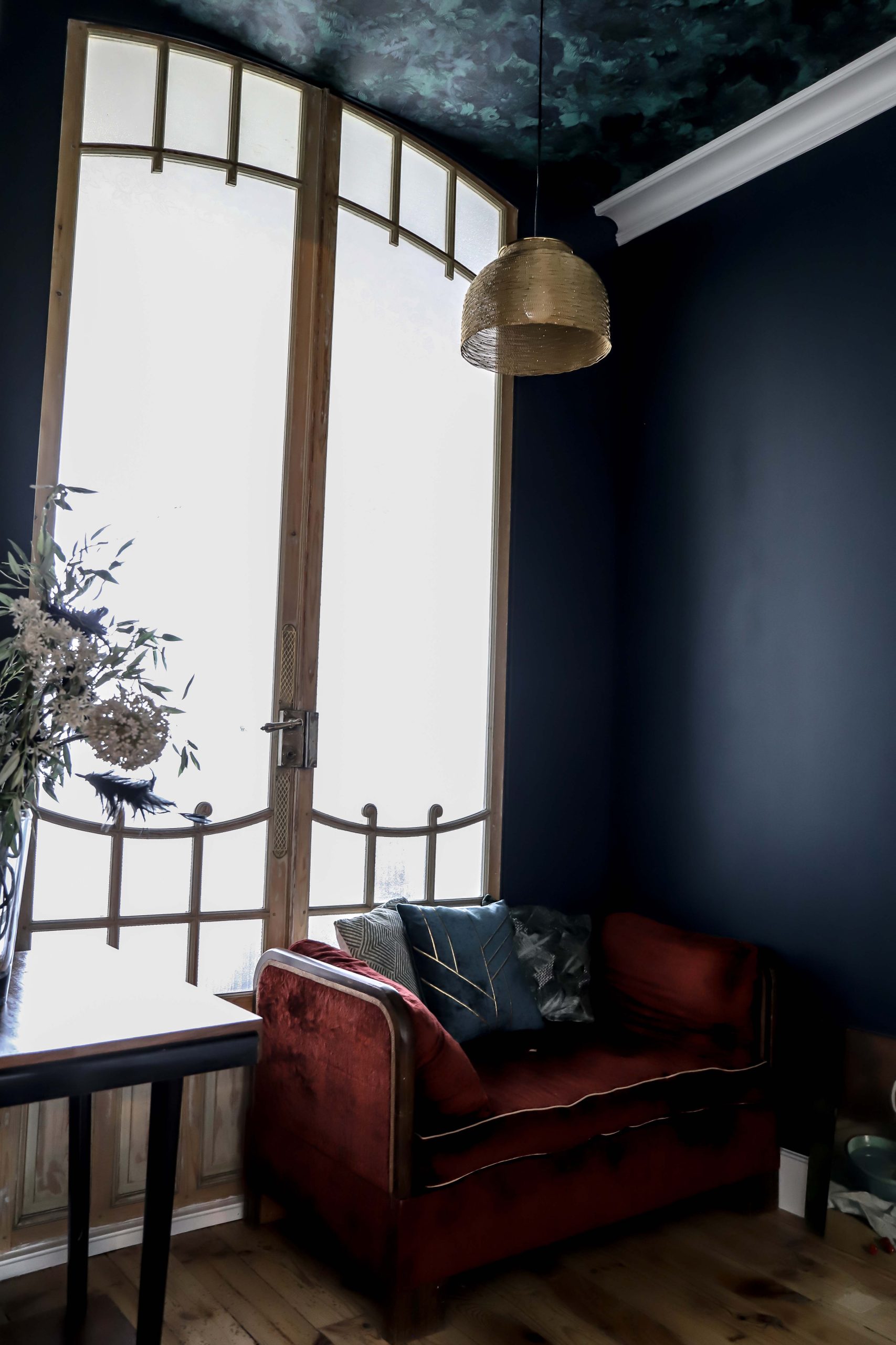Dans cet hôtel particulier, la décoration éclectique met en valeur le charme ancien des lieux tout en créant une ambiance originale et intemporelle. Les soubassements profonds, moulures, rosaces et revêtements muraux raffinés structurent l’espace et apportent lumière, relief et sophistication à chaque pièce.